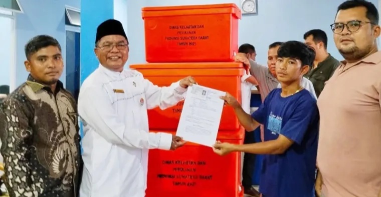 PASAMAN BARAT (25/07/2025) – Kelompok Pengolah dan Pemasaran (Poklahsar) “Berdagang Mencari Kehidupan” di Nagari Air Bangis, Kecamatan Sungai Beremas, Kabupaten Pasaman Barat, menerima bantuan berupa 40 unit fish box (kotak pendingin ikan) dari Pemerintah Provinsi Sumatera Barat melalui Dinas Kelautan dan Perikanan (DKP), Jumat (25/7/2025).