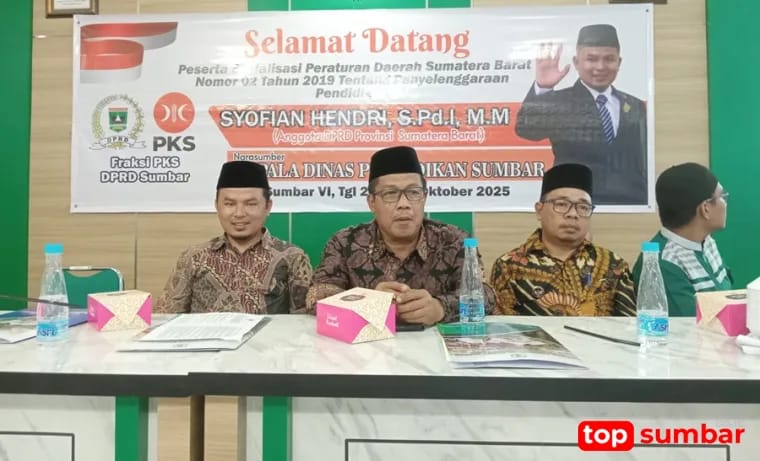 SIJUNJUNG(24/10/2025) – Anggota DPRD Provinsi Sumatera Barat (Sumbar) Syofian Hendri, S.Pd.I, MM melaksanakan sosialisasi Perda Sumbar Nomor 02 Tahun 2019 tentang Penyelenggaraan Pendidikan di Muaro Sijunjung, Jumat (24/10/2025). Kegiatan ini bertujuan meningkatkan pemahaman masyarakat terhadap kebijakan daerah di sektor pendidikan agar pelaksanaannya berjalan maksimal.
