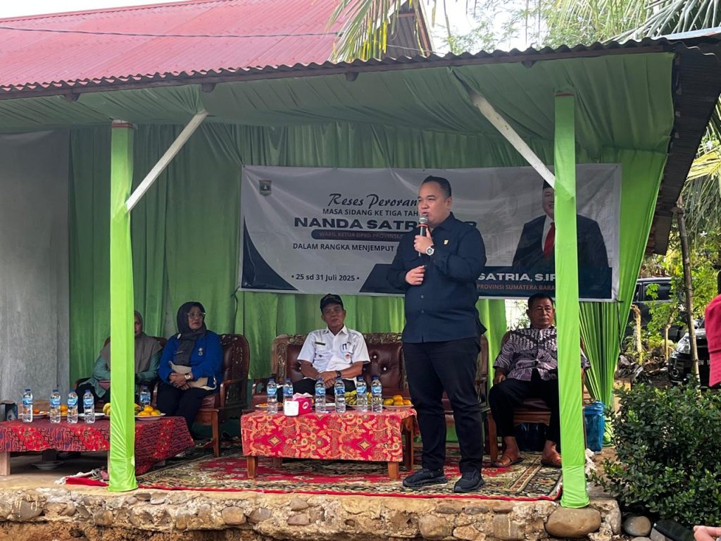 PADANG (30/07/2025) – Wakil Ketua DPRD Sumatera Barat, Nanda Satria, menyerap aspirasi masyarakat saat menggelar reses perseorangan di Tanjung Pulai, Kelurahan Balai Gadang, Kecamatan Koto Tangah, Kota Padang, Rabu (30/7/2025).